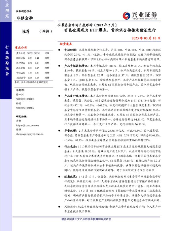 【兴业证券】【20230310】非银金融行业公募基金市场月度跟踪(2023年2月): 有色金属成为ETF爆点,首批混合估值法债基发行-25页