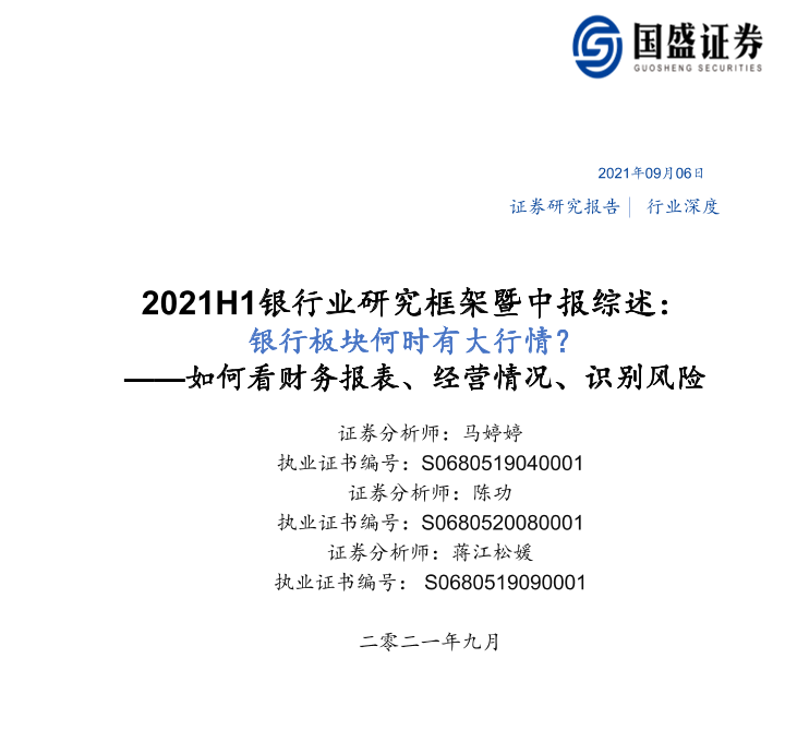 【国盛证券】【20210906】2021H1银行业研究框架暨中报综述:银行板块何时有大行情?如何看财务报表、经营情况、识别风险-62页
