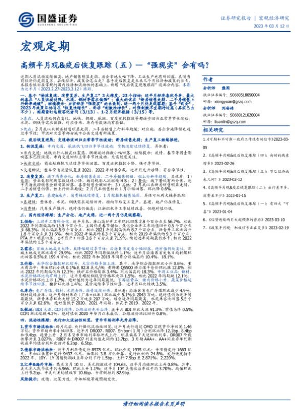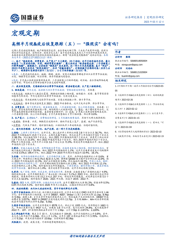 宏观经济 房地产市场 流动性 消费复苏 疫后恢复