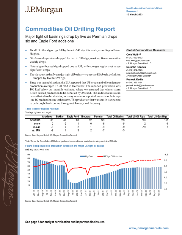 【J.P. Morgan】【20230310】Commodities Oil Drilling Report - Major tight oil basin rigs drop by five as Permian drops six and Eagle Ford adds one-8页