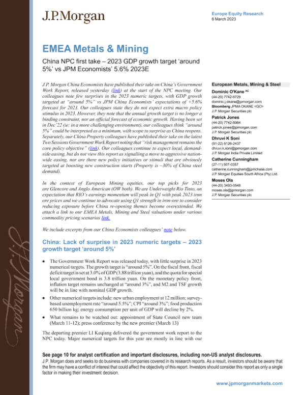 【J.P. Morgan】【20230306】JPMorgan-EMEA Metals & Mining China NPC first take – 2023 GDP growth-14页