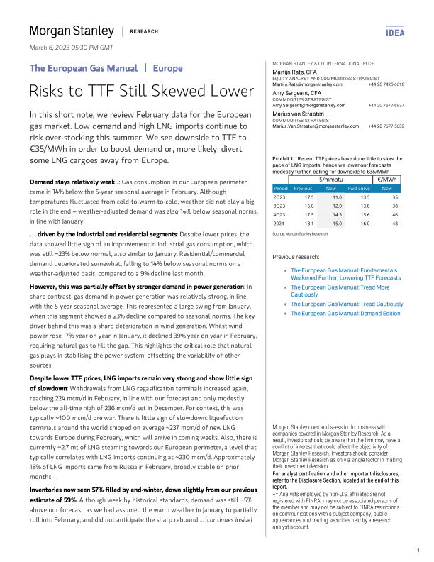 【Morgan Stanley】【20230306】The European Gas Manual Risks to TTF Still Skewed Lower-22页