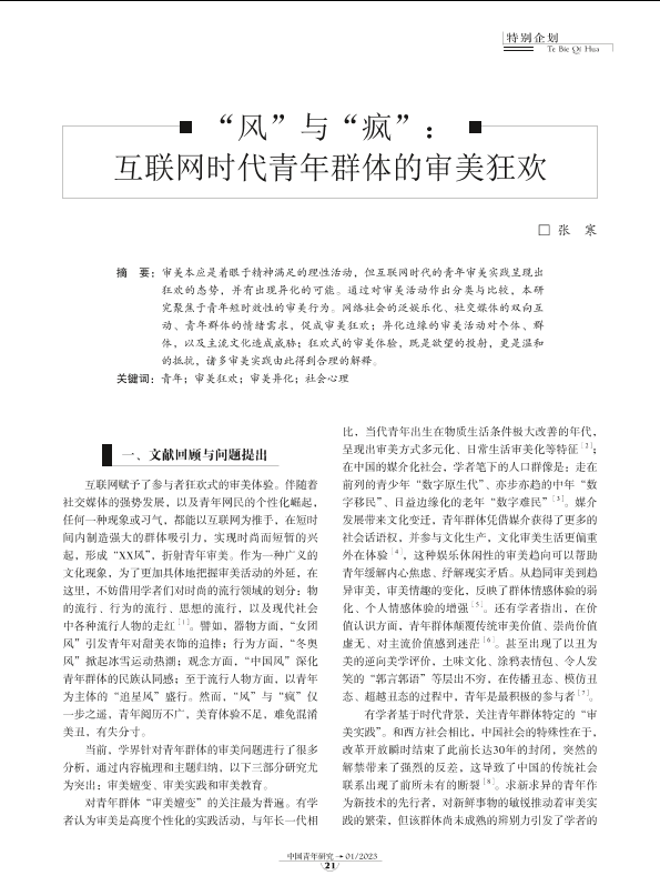 【中国青年研究】【20230101】“风”与“疯”:互联网时代青年群体的审美狂欢-8页