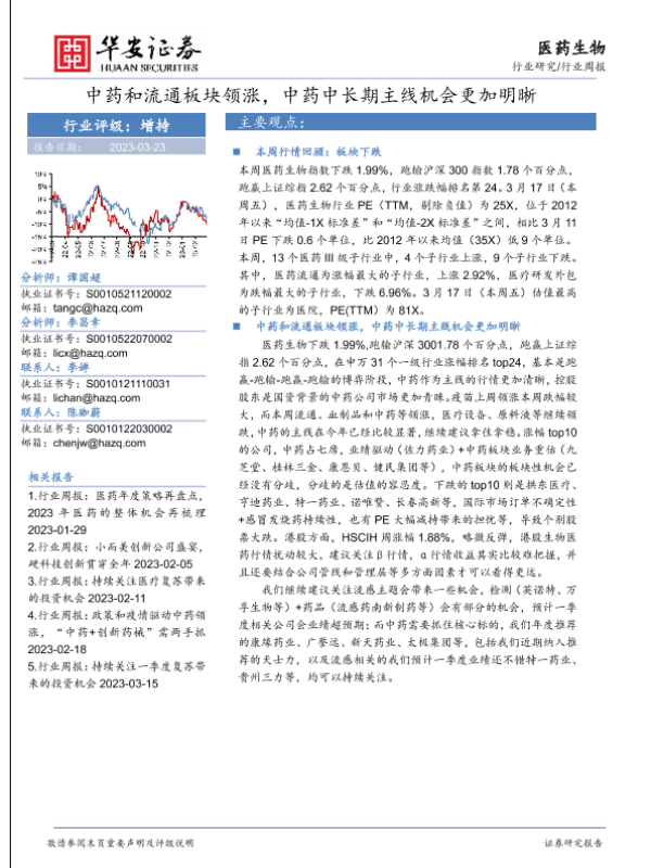 【华安证券】【20230323】医药生物行业周报:中药和流通板块领涨,中药中长期主线机会更加明晰-21页