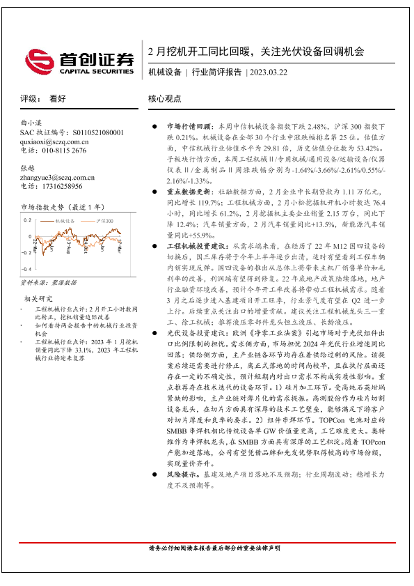 【首创证券】【20230322】机械设备行业简评报告:2月挖机开工同比回暖,关注光伏设备回调机会-15页