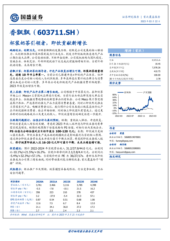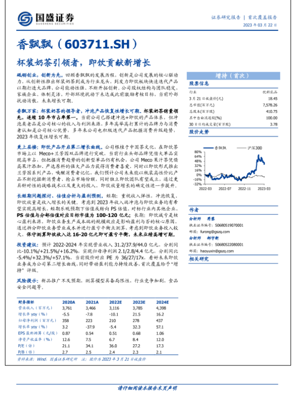 即饮产品 市场分析 杯装奶茶 财务预测 香飘飘