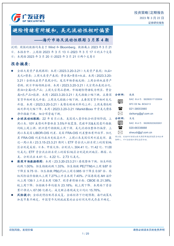 【广发证券】【20230322】海外市场及流动性跟踪3月第4期:避险情绪有所缓和,美元流动性相对偏紧-20页