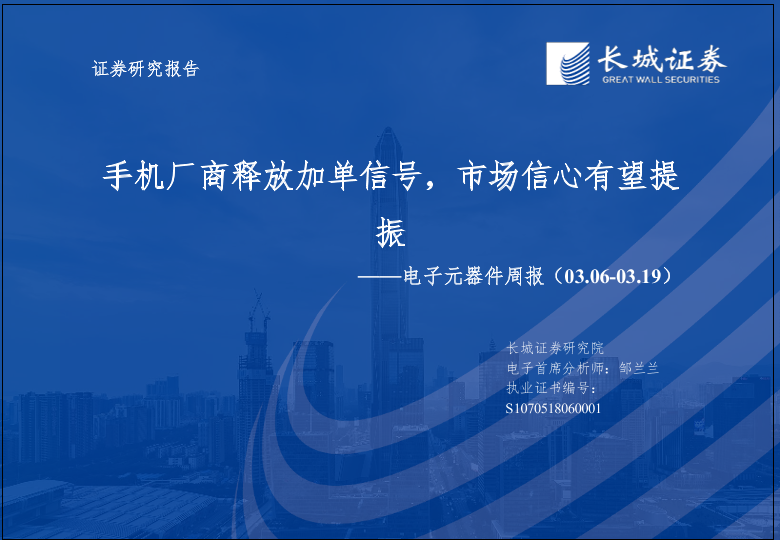 【长城证券】【20230319】电子元器件周报(03.06-03.19):手机厂商释放加单信号,市场信心有望提振-49页