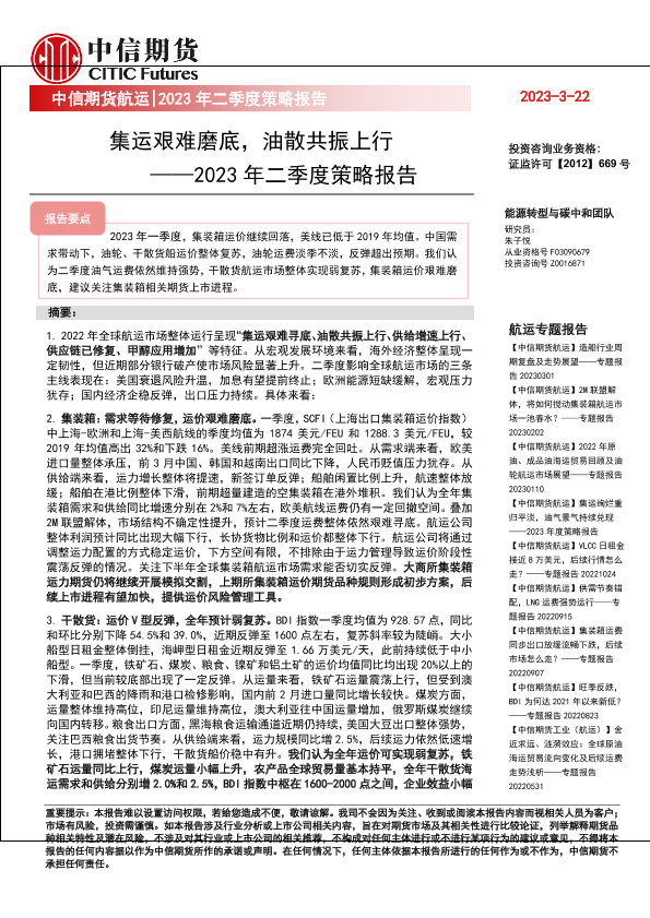 【中信期货】【20230322】2023年二季度策略报告:集运艰难磨底,油散共振上行-35页