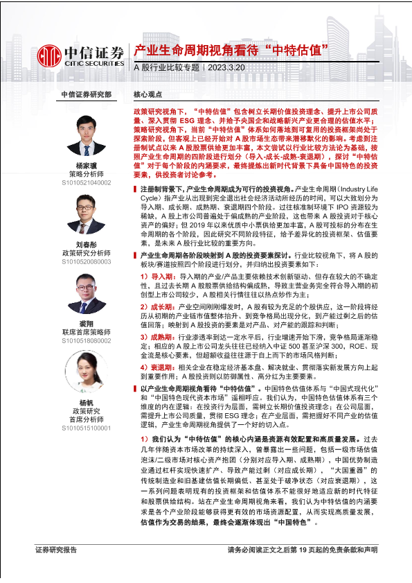 【中信证券】【20230320】A股行业比较专题:产业生命周期视角看待“中特估值”-20页