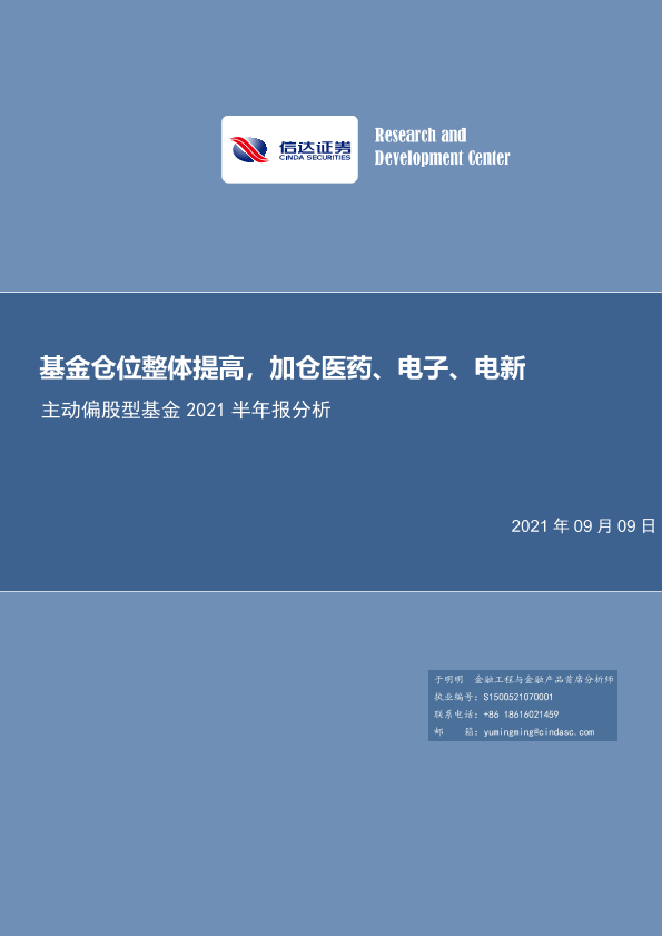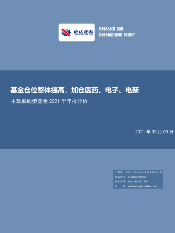 【信达证券】【20210909】主动偏股型基金2021半年报分析:基金仓位整体提高,加仓医药、电子、电新-28页
