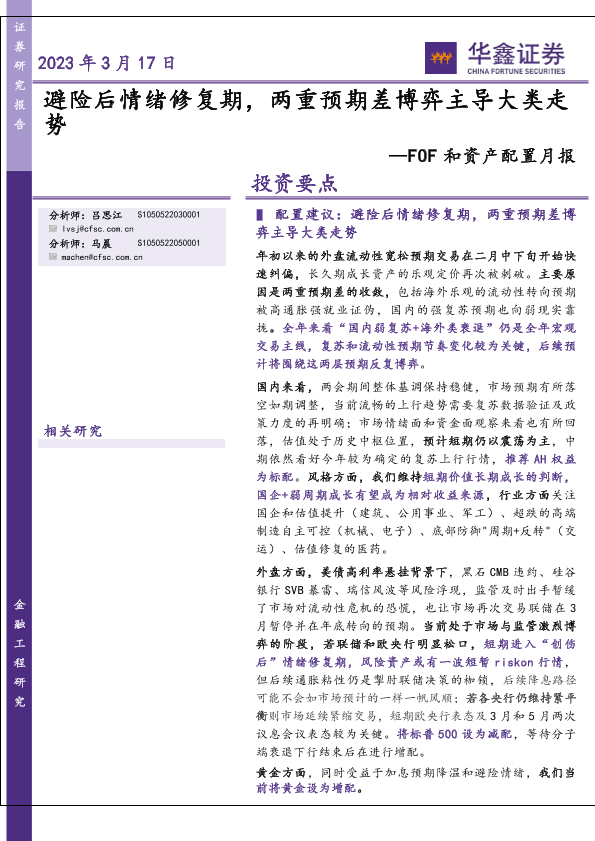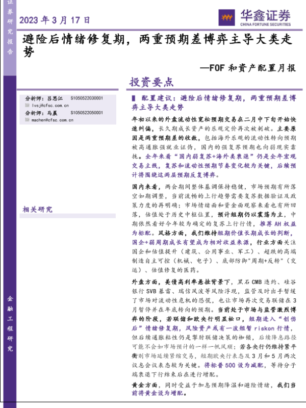【华鑫证券】【20230317】FOF和资产配置月报:避险后情绪修复期,两重预期差博弈主导大类走势-31页