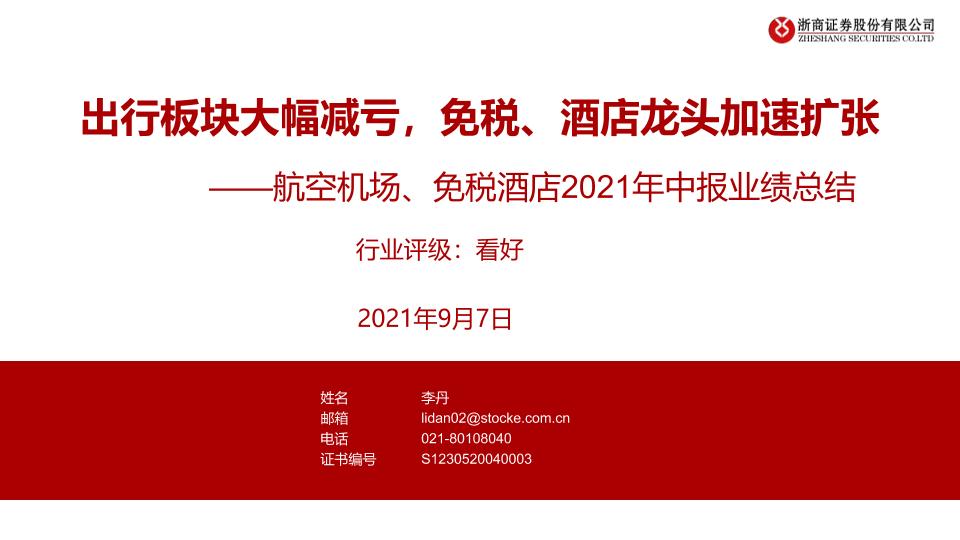 【浙商证券】【20210907】交运社服行业航空机场、免税酒店2021年中报业绩总结:出行板块大幅减亏,免税、酒店龙头加速扩张-38页