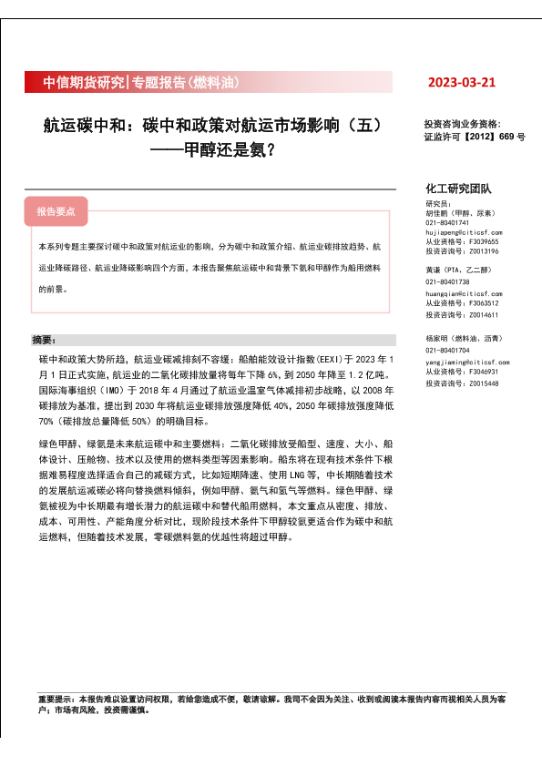 【中信期货】【20230321】专题报告(燃料油):航运碳中和,碳中和政策对航运市场影响(五),甲醇还是氨?-34页