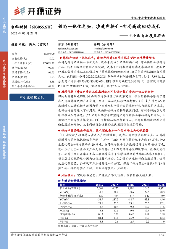 【开源证券】【20230321】中小盘首次覆盖报告:锦纶一体化龙头,渗透率提升+布局高端驱动成长-30页