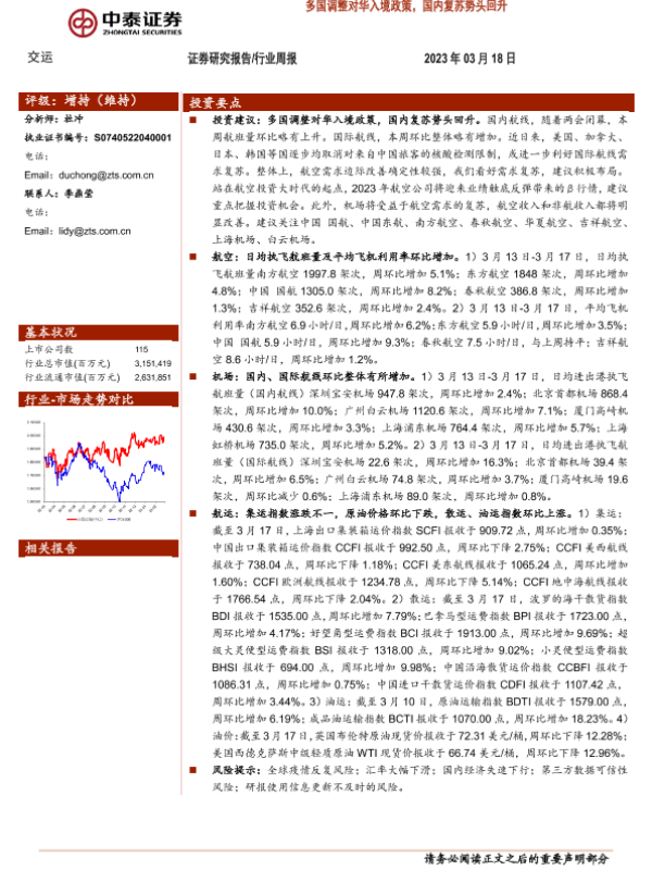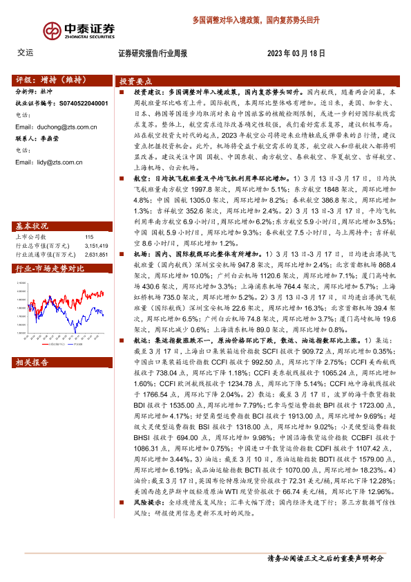 【中泰证券】【20230318】交运行业周报:多国调整对华入境政策,国内复苏势头回升-36页