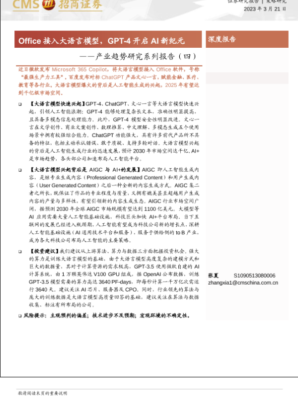 【海通证券】【20230321】产业趋势研究系列报告(四):Office接入大语言模型,GPT_4开启AI新纪元-20页