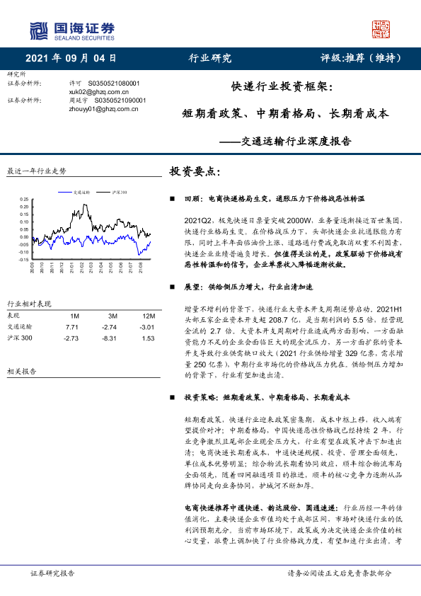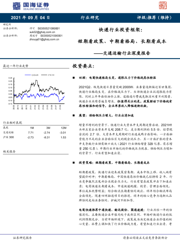 【国海证券】【20210904】交通运输行业深度报告:快递行业投资框架,短期看政策、中期看格局、长期看成本-22页
