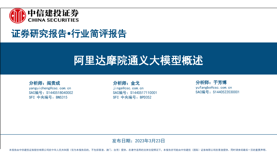 【中信建投证券】【20230323】人工智能行业:阿里达摩院通义大模型概述-18页