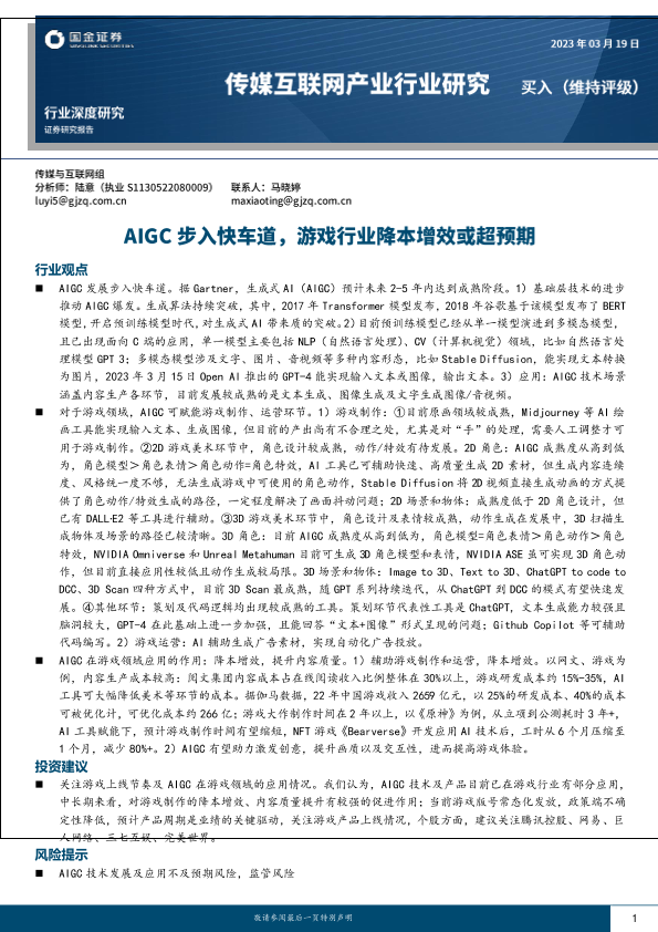 【国金证券】【20230319】传媒互联网产业行业深度研究:AIGC步入快车道,游戏行业降本增效或超预期-19页