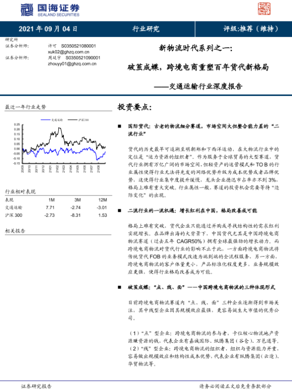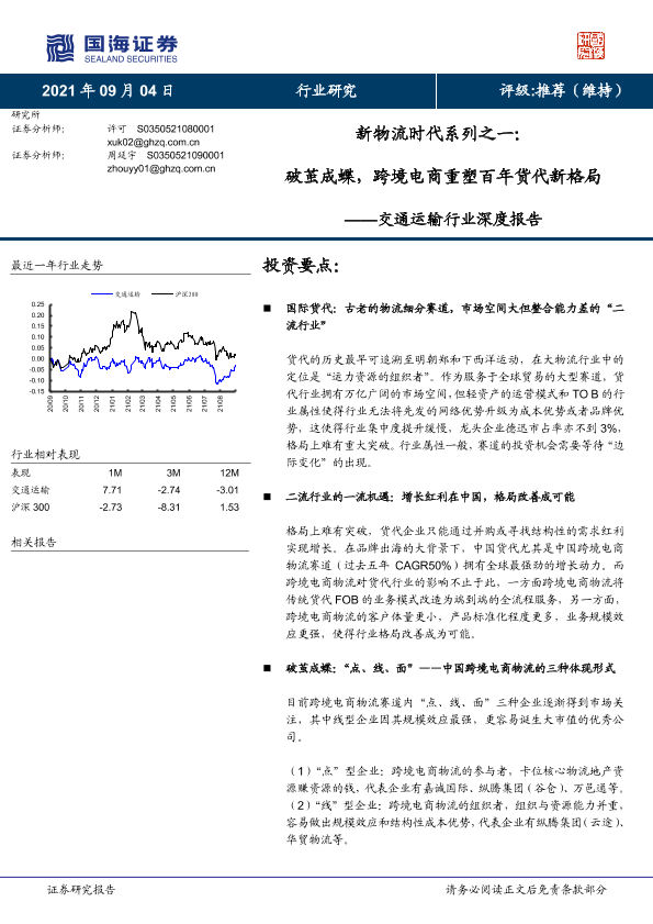 【国海证券】【20210904】新物流时代系列之一:破茧成蝶,跨境电商重塑百年货代新格局-34页