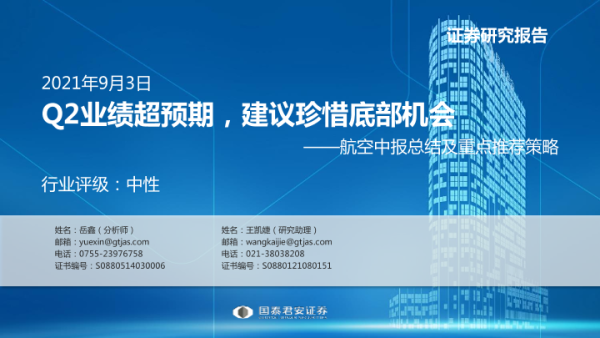 【国泰君安证券】【20210903】交通运输行业航空中报总结及重点推荐策略:Q2业绩超预期,建议珍惜底部机会-29页