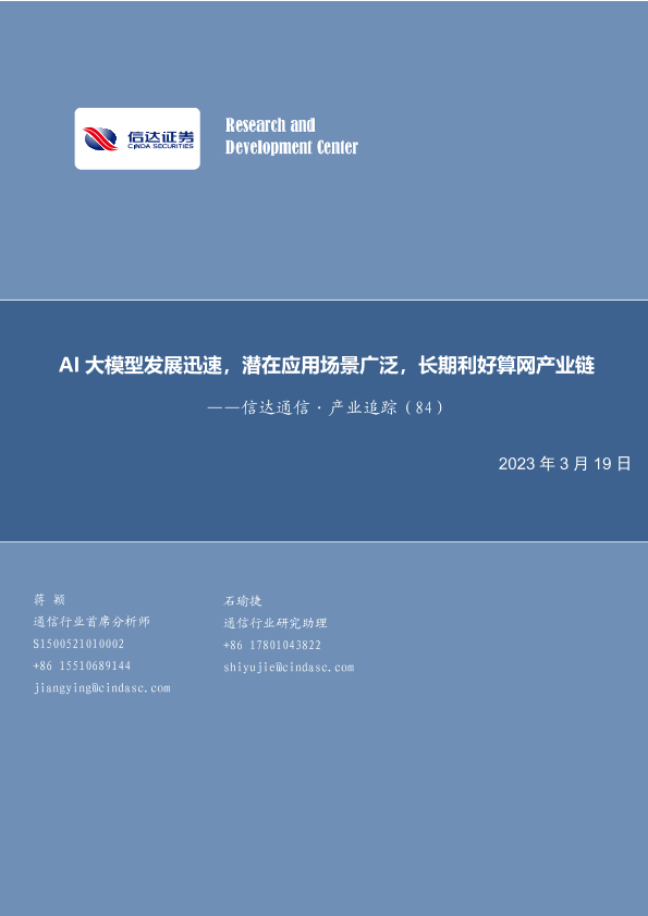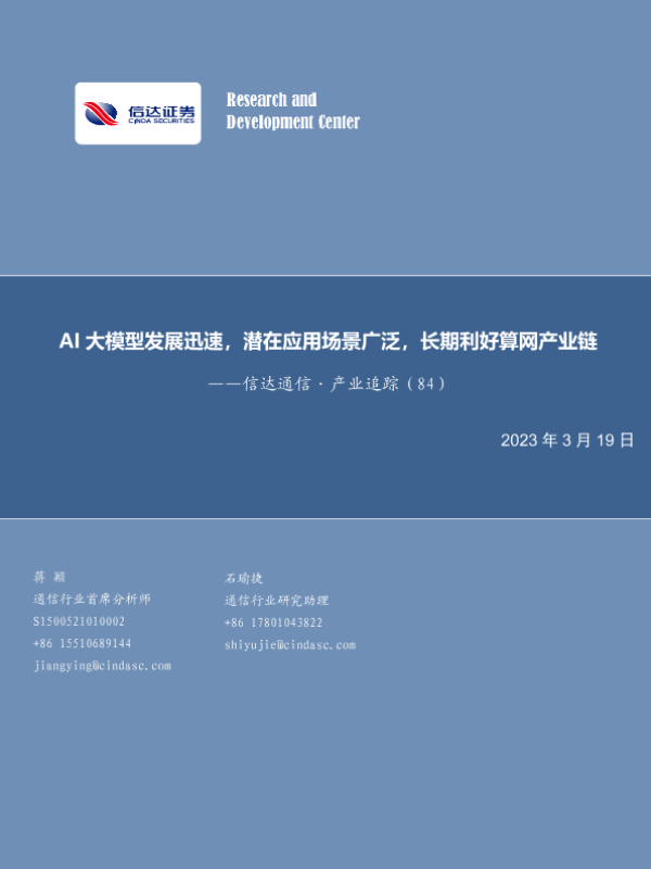 【信达证券】【20230319】信达通信·产业追踪(84):AI大模型发展迅速,潜在应用场景广泛,长期利好算网产业链-24页