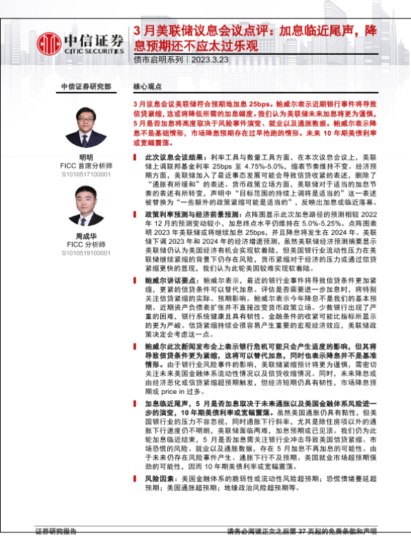 【中信证券】【20230323】3月美联储议息会议点评:加息临近尾声,降息预期还不应太过乐观-38页