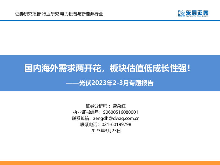 【东吴证券】【20230323】光伏行业2023年2_3月专题报告:国内海外需求两开花,板块估值低成长性强!-87页
