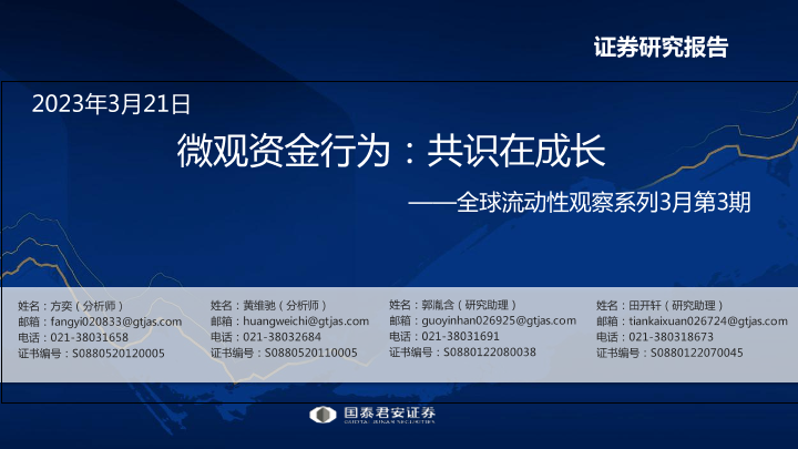 【国泰君安证券】【20230321】全球流动性观察系列3月第3期:微观资金行为,共识在成长-57页