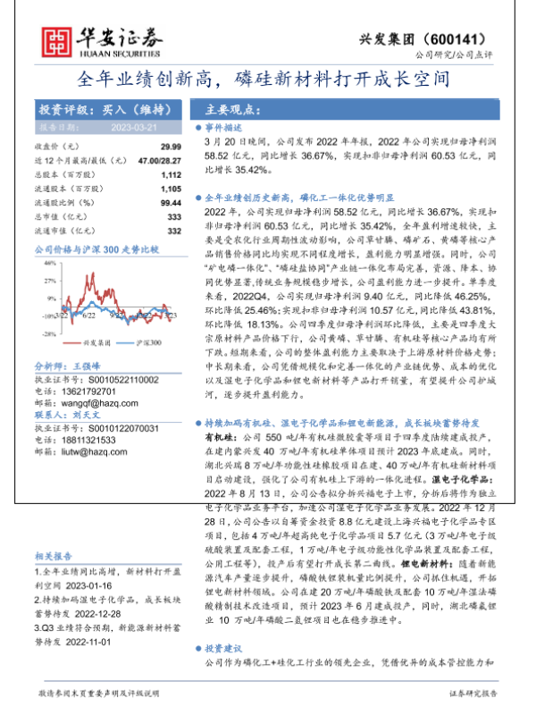 【华安证券】【20230321】全年业绩创新高,磷硅新材料打开成长空间-24页