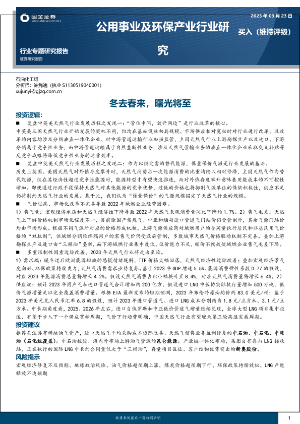 【国金证券】【20230323】公用事业及环保行业专题研究报告:冬去春来,曙光将至-21页