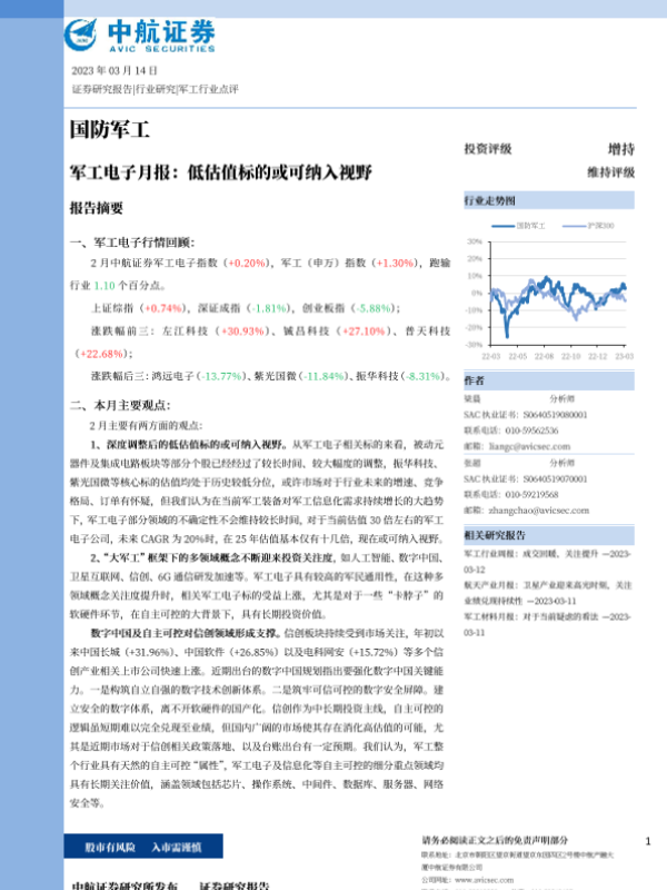 【中航证券】【20230314】军工电子月报:低估值标的或可纳入视野-21页