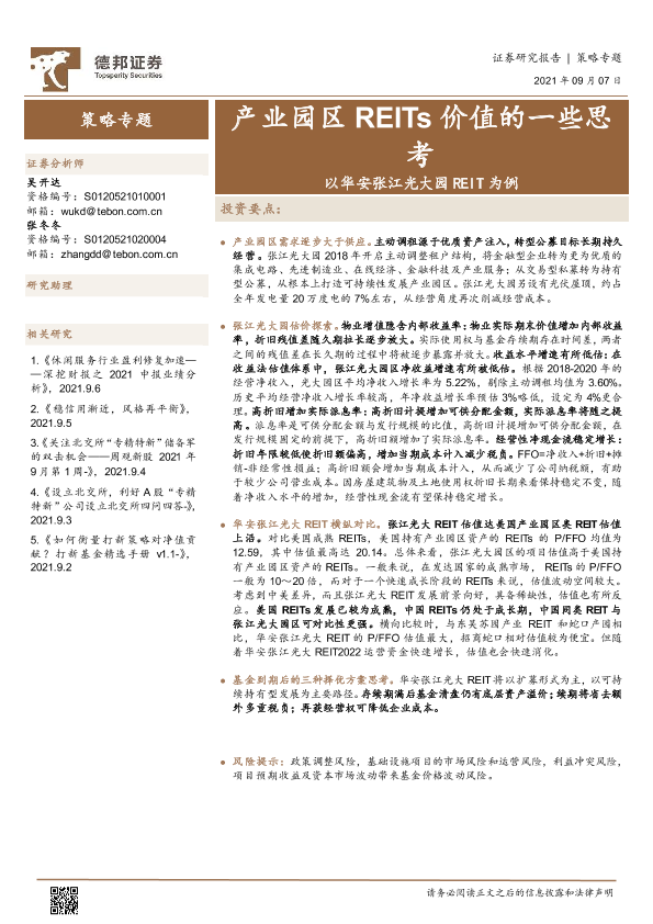 【德邦证券】【20210907】以华安张江光大园REIT为例:产业园区REITs价值的一些思考-15页