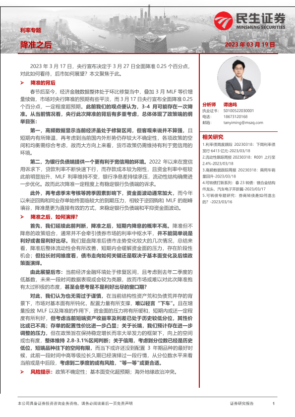 【民生证券】【20230319】利率专题:降准之后-21页