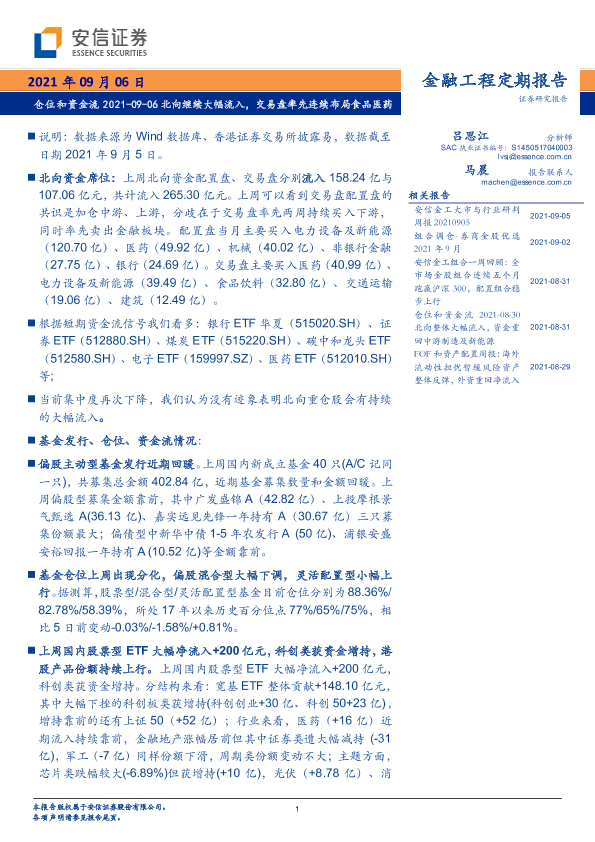 【安信证券】【20210906】仓位和资金流 2021-09-06北向继续大幅流入,交易盘率先连续布局食品医药-21页