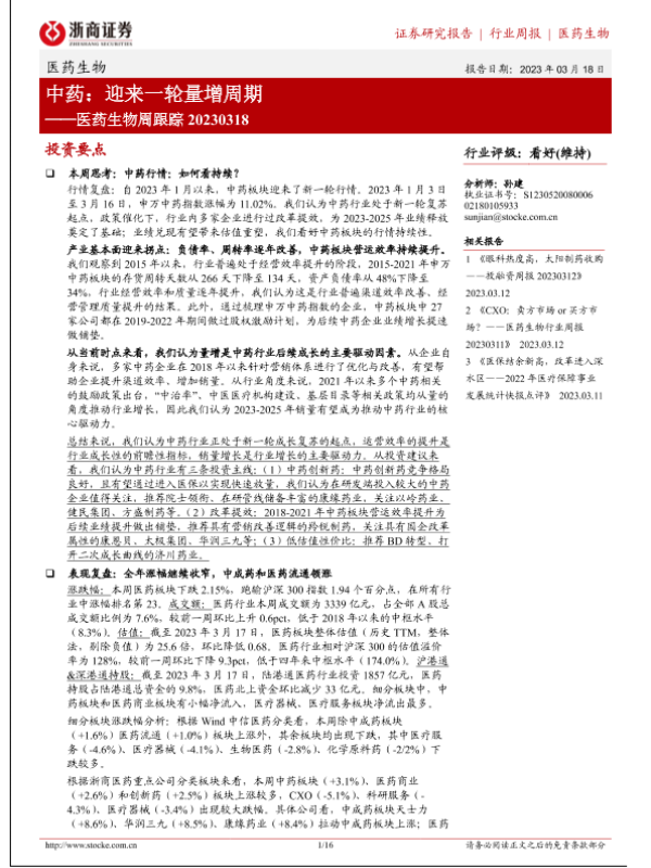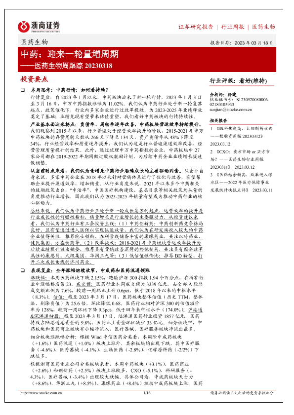 【浙商证券】【20230318】医药生物周跟踪:中药:迎来一轮量增周期-16页