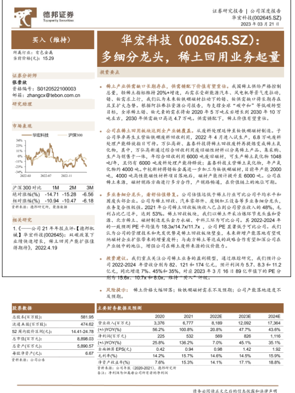 【德邦证券】【20230321】华宏科技(002645)多细分龙头,稀土回用业务起量-31页