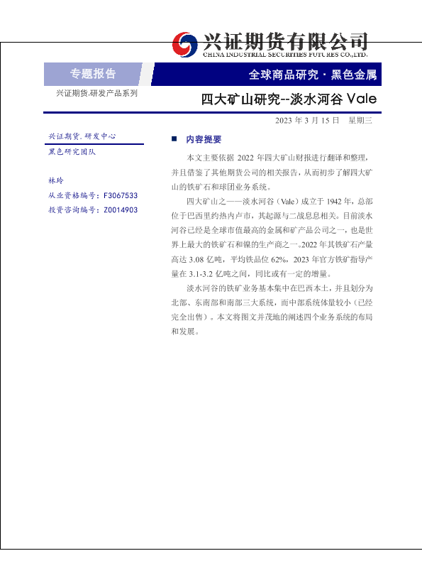 【兴证期货】【20230315】四大矿山研究:淡水河谷Vale-24页