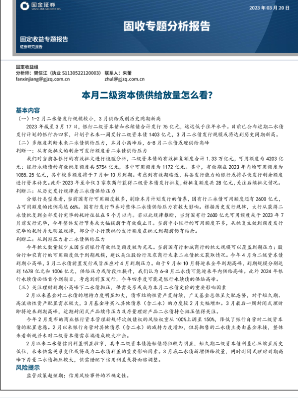 【国金证券】【20230320】固收专题分析报告:本月二级资本债供给放量怎么看?-20页