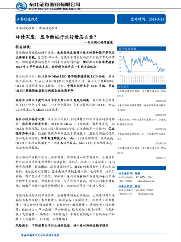 【东北证券】【20230321】固收转债深度:转债深度,显示面板行业转债怎么看?-55页