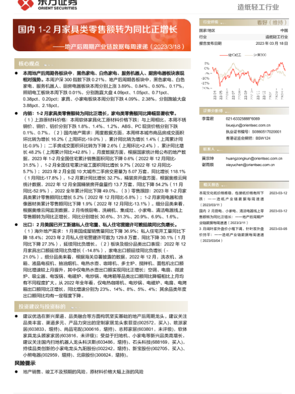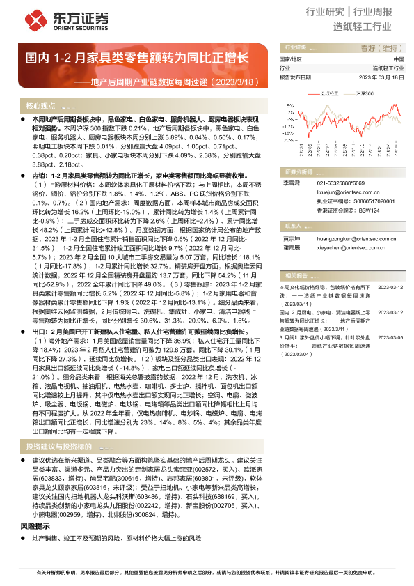 【东方证券】【20230318】地产后周期产业链数据每周速递:国内1-2月家具类零售额转为同比正增长-16页