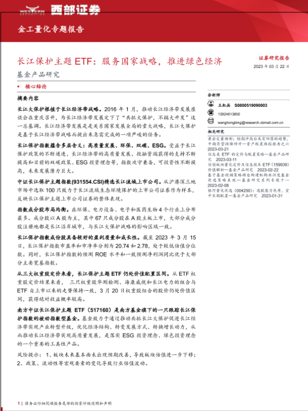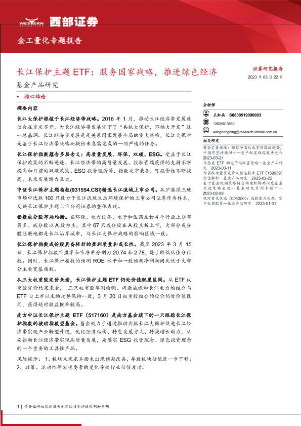【西部证券】【20230322】基金产品研究:长江保护主题ETF,服务国家战略,推进绿色经济-18页