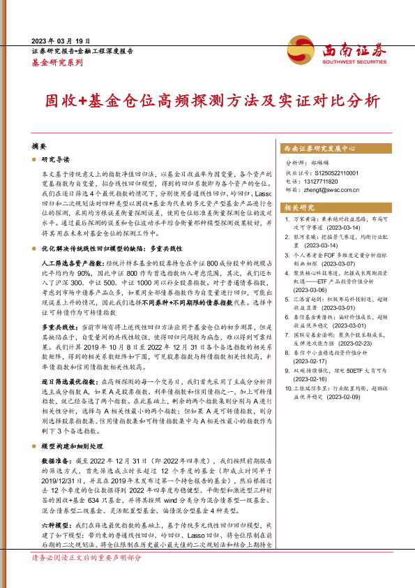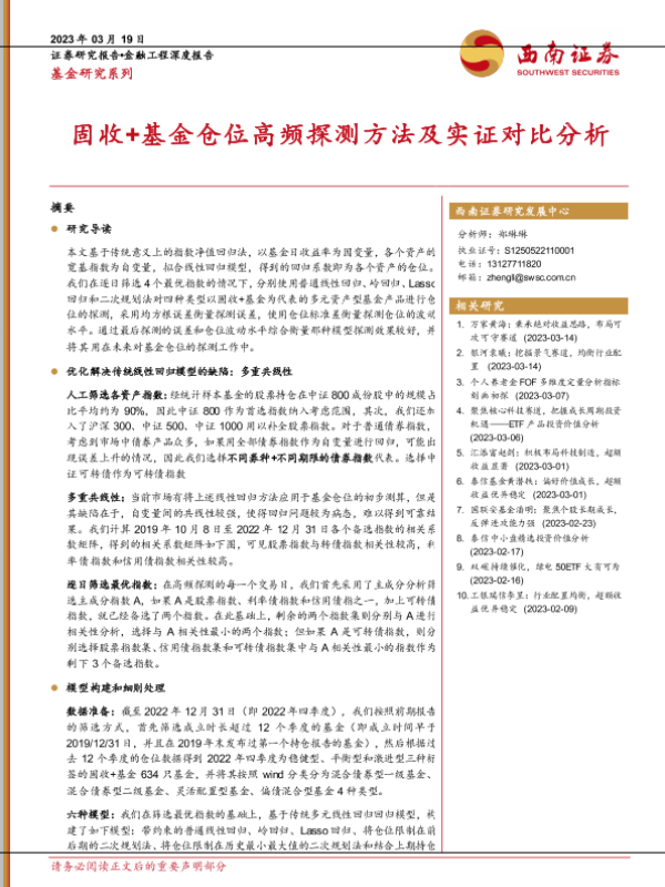 【西南证券】【20230319】基金研究系列:固收+基金仓位高频探测方法及实证对比分析-30页