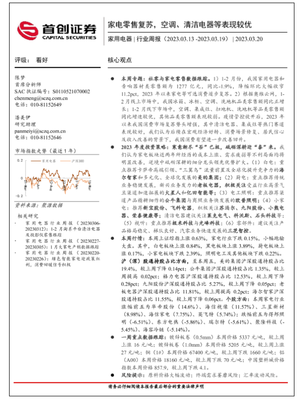 【首创证券】【20230320】家用电器行业周报:家电零售复苏,空调、清洁电器等表现较优-18页