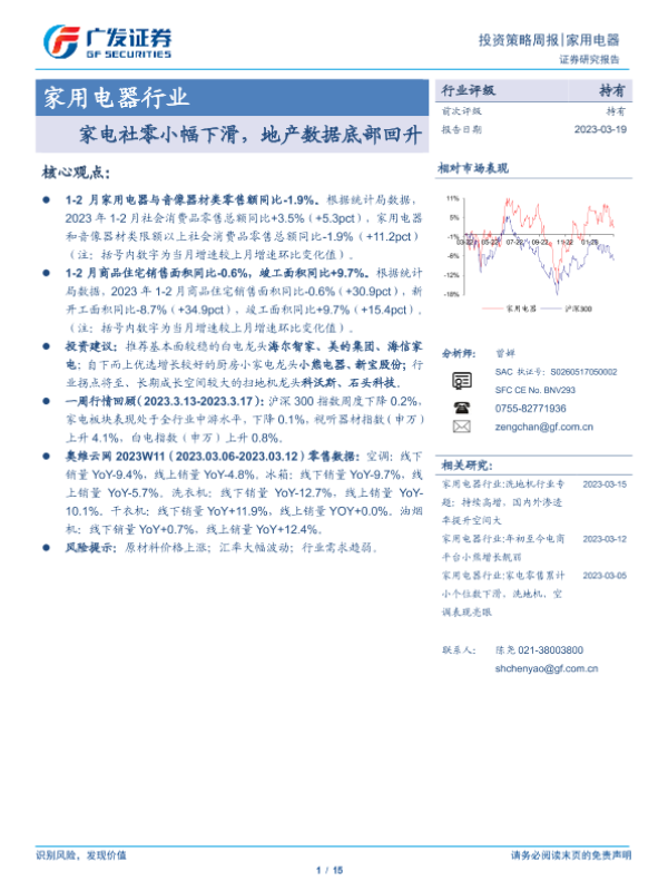 【广发证券】【20230319】家用电器行业投资策略周报:家电社零小幅下滑,地产数据底部回升-15页