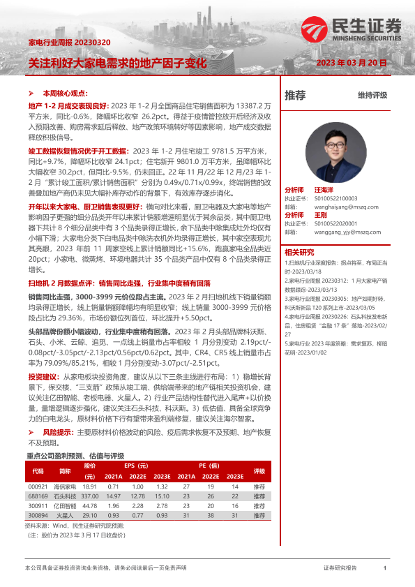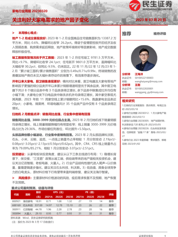 【民生证券】【20230320】家电行业周报:关注利好大家电需求的地产因子变化-18页
