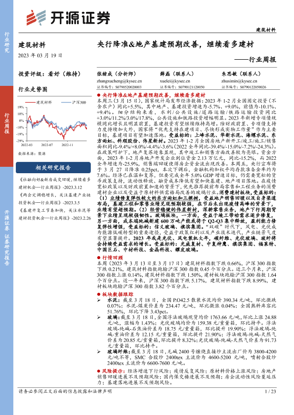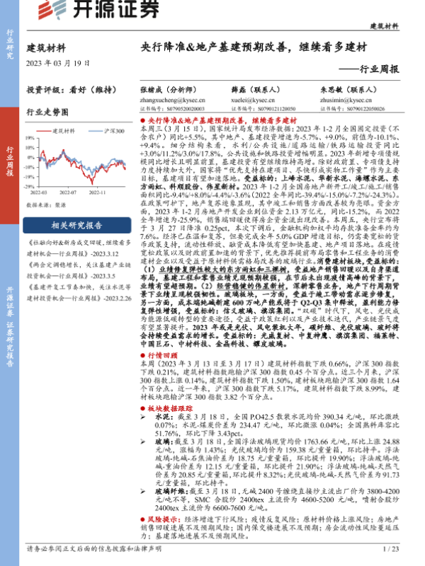 【开源证券】【20230319】建筑材料行业周报:央行降准&地产基建预期改善,继续看多建材-23页