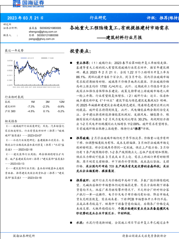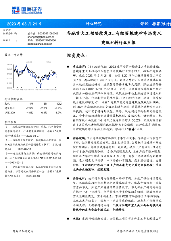 【国海证券】【20230321】各地重大工程陆续复工,有效提振建材市场需求——建筑材料行业月报-15页