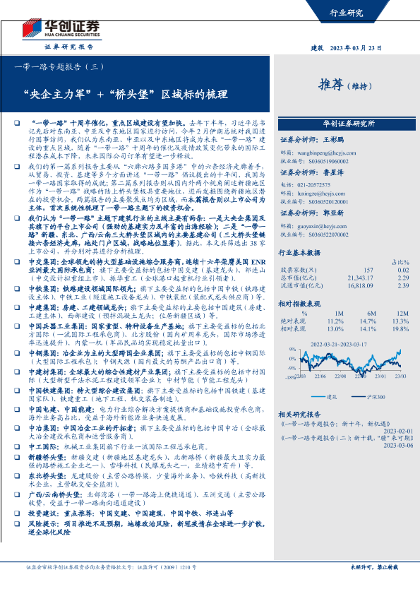 【华创证券】【20230323】建筑行业一带一路专题报告(三):“央企主力军”+“桥头堡”区域标的梳理-93页